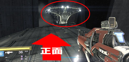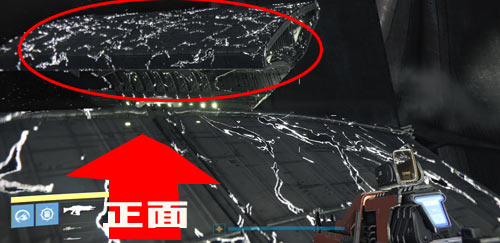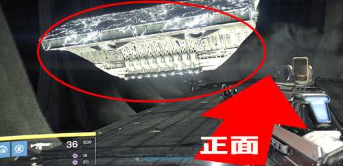 左手頭上の船は無視