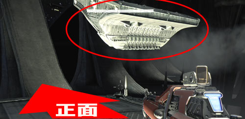 - ワープゲートの前で、後ろを振り返ると、「石炭化した破片XXIX」(29)