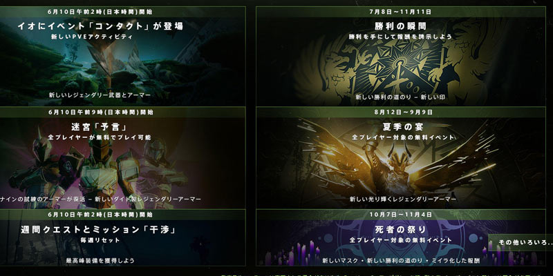 Destiny2(デスティニー2影の砦)2020年6月10日よりシーズン11「到来のシーズン」6月~11月のイベントカレンダー・ロードマップが公開中です。無料プレイやシーズンパスでできること。イベント解禁日、期間限定イベント実施時期など