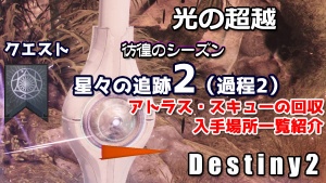 ●デスティニー2攻略 クエスト「星々の追跡2」の過程2、アトラス・スキューの回収 入手場所一覧紹介 アガーの杖関連(2週目) 彷徨のシーズン15 destiny2 光の超越
