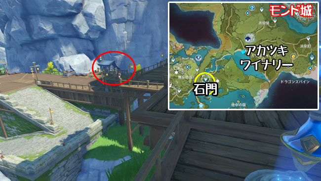 噂によると「(璃月エリア)の石門(MAP画像表示)」に怪しい人が現れた。