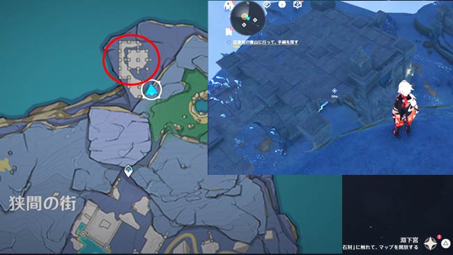 マップを開いて「稲妻」を選び、海祇島の珊瑚宮へ行く。