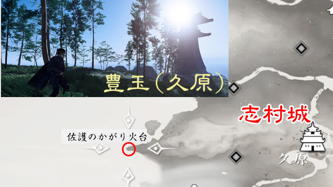 ![]() 3.(6)佐護のかがり火台 | 噂の伝播(小) | 豊玉(久原) 久原の遥か西、突き出た地形の場所。双子湾の北 ※実際に行くには、上県のストーリー「後門の狼」後に行ける。 |