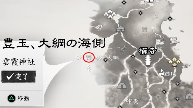 - 一部を除き、神社を進むには、ストーリー進行で入手できる兵具「鉤縄」が必要です。