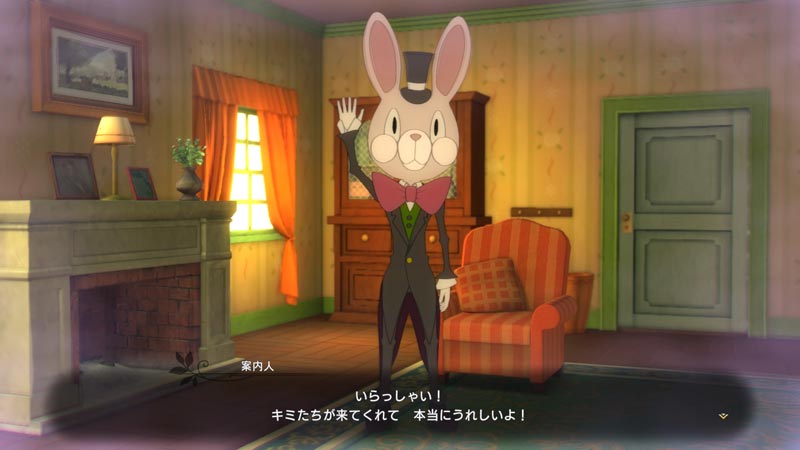 そこには、タキシード姿のあやしいウサギ頭の人物が、自らを「案内人」と名乗り立っているのだった。今回の物語のカギを握るこの「案内人」の目的とは一体?