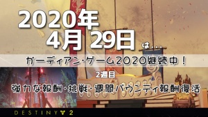 ●【デスティニー2】ガーディアン・ゲーム2020継続中!3週目。今日は週間報酬リセット日 Destiny2