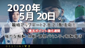 ●【デスティニー2】5月20日は週間報酬リセット日!悪名強化週間。臨時アップデート2.8.1.2も配信中 Destiny2